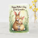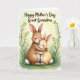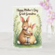 Perfect for sharing a tender Mother’s Day moment, this card shows two fluffy-eared rabbits cuddled close in the center, with the larger warm-brown one wrapping both paws around a smaller, cream-colored companion. Their eyes are gently closed, cheeks softly pink, and their relaxed faces suggest quiet trust and closeness ❤️. A pale, sunlit wash fills the background, with a brighter glow drifting in from the upper right like early morning light. Along the bottom, fresh green grass stretches across the scene, dotted with tiny white petal shapes as if a breeze just passed through. Flowering branches arch in from the sides and top edges, carrying pale peach blossoms that frame the hug like a natural canopy. Near the top, a dark, flowing message is placed in a single line, standing out against the light sky and leaving the artwork open and airy 🌼. The colors stay gentle and blended, with soft shading on the rabbits’ fur and faint gradients behind them, while the blossoms and petals add small points of detail around the embrace. Share your Mother’s Day sentiments with someone special 👩.