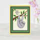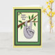 Designed with a soft illustrated look, the card shows two tree-dwelling creatures with grey fur and dark mask-like markings, with the larger one holding the smaller close in a gentle hug ❤️. They hang from a sturdy brown branch that angles across the scene, drawing your eye toward their round, shining eyes and the tender way they lean into each other. The background is a light cream tone that keeps the focus on their cuddled pose and the calm, affectionate mood. Above the illustration, the words “Happy Mother’s Day!” sit clearly in a friendly handwritten style, colored in a dark tone that stands out without feeling harsh. The fur is shaded with fine strokes that suggest softness, while the green leaves around the branch add a fresh touch 🌼. A thin black outline frames the picture area, followed by a deep green border that adds depth. Behind that, a pale yellow outer area surrounds the framed scene. The branch is dark against the cream background, with clusters of bright green leaves near the top edge.