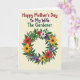 This greeting card features a soft cream background that keeps the scene gentle and inviting, with a romantic, caring tone in the way the elements nestle together ❤️. A large circular wreath of flowers sits in the lower center, packed with stylized blooms in rich red, sunny yellow, white, and deep purple, all threaded with layered green leaves. The wreath feels like a hug around the page, with petals and foliage arranged to look abundant while still neatly contained in the round shape. Above it, a short message is set in a rounded, friendly font, with the lines centered and colored in crimson, purple, and deep green. Inside the wreath, a green watering can with a thin golden outline rests among the leaves, suggesting steady care and attention. Nearby, a small garden hand tool in blue with orange accents adds a practical touch, like someone tending the flowers for someone they adore 🌼. The lettering sits above the wreath in the upper half of the card, while the watering can and tool are tucked into the lower ring among the blossoms and greenery.