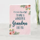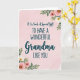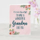 Designed with a gentle blush-pink background, this card features a soft watercolor texture that feels like a warm hug ❤️. Centered on the page is the message, “It Is Such A Special Gift TO HAVE A WONDERFUL Grandma LIKE YOU,” set in a mix of flowing lettering and simple, easy-to-read print. The word “Grandma” stands out in larger, more graceful lettering, giving it extra focus like a fond glance held a moment longer. The main text appears in a deep gray tone, clearly readable against the pale backdrop. In the upper right corner, a small cluster of pink and white blossoms leans inward, as if reaching toward the words. A matching floral cluster sits in the lower left, with soft petals, slender stems, and sage-green leaves that frame the message without crowding it 🌼. The flowers look lightly painted, with gentle shading and airy edges against the rosy wash.