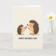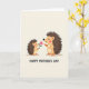 Designed with two spiky-backed woodland creatures, this illustration places them on a pale cream background where their gentle interaction takes center stage. A smaller figure stands close, offering a bright pink flower with a slim green stem, and its rosy cheeks and shy posture suggest warm affection ❤️. The larger figure, with dark brown quills and a soft tan face, leans in slightly with a tender, appreciative gaze that reads like close friendship. Soft shading adds depth to their rounded features while keeping the scene simple and calm. Beneath the pair, the message “HAPPY MOTHER’S DAY” appears in uppercase letters, set in a dark tone that contrasts clearly against the light backdrop. The open space around them keeps attention on the flower and the fond look shared between the two figures 🌼. The pink bloom sits between them at chest height, angled upward toward the larger creature’s face.