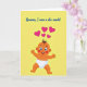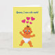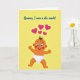 This card features a cute, human-like baby figure in deep orange, placed slightly below the center and reaching outward as if asking for a close hug ❤️. The baby wears a simple white outfit, and its bright blue eyes and rosy cheeks give it a tender, trusting look that suggests closeness and affection. Five magenta hearts float upward above the baby, creating a gentle sense of love rising through the space. The background is a solid, sunny yellow that keeps the scene light and cheerful. A short message sits near the top in blue lettering, clearly separated from the illustration and easy to spot. The baby’s small smile and open arms make the moment feel like a sweet exchange between family or dear friends 👩. Dark outlines define the character, including a small spiky tuft of dark hair, while the hearts remain a rich magenta against the yellow backdrop.