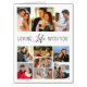 Romantic photo collage valentine's day card, lettered with "Loving Life With You". The photo template is set up for you to add 10 of your favorite photos, which will automatically display in a collage of vertical portrait, horizontal landscape and square formats. You can also customize the occasion and the message on the inside of the card.