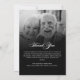 In times of loss, this memorial card provides a dignified and sincere way to convey your gratitude to those who have offered their condolences and support. The front of the card features a photograph of your loved one, overlaid with "In Loving Memory" in an elegant modern calligraphy script and their name and lifespan. The back of the card reveals a second photo fading into black with "Thank You" in the elegant modern calligraphy script, followed by your personal message of thanks. The card is designed to make recipients feel acknowledged and appreciated for their empathy and gestures of solace. It's a thoughtful closure to the formal mourning period, perfect for sending out after a celebration of life, or funeral or memorial service. This thank you card is not only a token of thanks but also a cherished reminder of the person who brought everyone together. Share your deepest thanks with this timeless black and white thank you card.