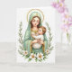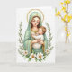 Designed with a tender central scene, the artwork shows a gentle adult figure in flowing mint-green drapery holding a small child close, their faces angled toward each other with a quiet, affectionate gaze. Soft golden detailing trims the garment, and a faint golden ring sits behind the adult’s head, adding a calm, glowing focal point. The child’s rosy cheeks and wide eyes look up with trusting warmth, while small hands rest lightly against the fabric as if clinging for comfort. Around them, a balanced frame of leafy greens and white daisies with golden centers creates a garden-like setting that feels calm and close, with a hint of romance in the way the figures lean together. Near the top, an Easter greeting appears in gentle lettering, set in a warm gold tone that echoes the accents in the clothing, with a smaller line of text placed beneath in a softer green. A few subtle highlights on faces and folds of fabric give the scene a cozy, intimate glow, accented by a tiny 🌷. The border shows lush green leaves interwoven with white daisies and sunny yellow centers, forming a neat oval around the pair 🐇.