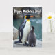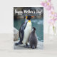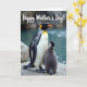 Designed with two graceful bird figures at the center, this Mother’s Day card shows an adult standing tall beside a small, fluffy youngster on a pale, textured rock. The adult has crisp black-and-white feathers with warm golden-orange shading around the head and upper chest, giving it a calm, protective presence. Near its feet, the charcoal-grey chick tilts its head up with a tender, trusting look that reads like quiet affection ❤️. Behind them, a softly blurred blue-green stretch of water creates a peaceful setting and keeps the focus on their closeness. Gentle light brings out the contrast between the adult’s sleek feathering and the chick’s plush down, adding a cozy, intimate feel. Near the top, a celebratory Mother’s Day message is placed in a flowing style, set in a dark tone that stands out against the light background 🌼. The rock ledge is lightly speckled and uneven, with the pair positioned slightly off-center against the smooth, misty water.