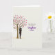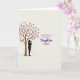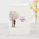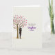 This card shows a simple digital illustration with a slender brown tree on the left, its thin branches dotted with many magenta-pink heart shapes like little love notes ❤️. Beneath the tree, a dark silhouette of an adult gently cradles a small child, their close posture suggesting quiet affection and steady care without showing facial features. The background is a creamy off-white that keeps the scene calm and open, letting the figures and hearts stand out. Near the bottom, a soft golden-yellow oval sits like a patch of ground, adding a gentle sense of warmth and rootedness 🌼. On the right side, a short greeting is placed in two lines, with the main words centered and larger than the rest. The lettering is purple and flowing, with smaller supporting text nearby in the same color but lighter and less prominent. The overall layout feels balanced, with the tree and figures on the left and the purple message on the right over the pale background, while the heart-filled branches reach toward the text. A light golden-yellow oval rests under the figures, and the magenta hearts cluster along the upper-left branches against the off-white space.