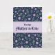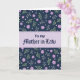 This card features a deep navy background filled with a repeating floral pattern that feels affectionate and welcoming, like a gentle hug ❤️. Across the center, a horizontal band of soft lavender runs left to right, creating a calm stage for the main message. The words “To my Mother in Law” sit centered on that band, with “To my” in a neat serif style and “Mother in Law” in a more decorative, old-fashioned letter style, both in a dark ink for strong contrast. A fine dashed line frames the lavender panel, adding a tidy border without stealing attention from the message. Around it, small five-petaled blossoms in tender pink appear with brighter pink centers, giving the pattern a sweet, caring look 🌼. Light green leaves with pale outlines curl between the flowers, and slim white sprigs dotted with tiny pink berries fill the spaces. The floral elements are evenly scattered across the navy field, with pink blooms, light green leaves, and little white sprigs repeating around the central lavender strip.