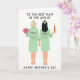 This card shows two women viewed from behind, standing close with their arms around each other and their fingers gently linked, a quiet closeness that reads like family love with a romantic tenderness. They wear matching mint-green robes and stand barefoot on a plain white background, keeping the focus on their shared embrace ❤️. The woman on the left holds a full bouquet of pink roses, the petals adding a sweet, affectionate contrast against the cool green fabric. The woman on the right lifts a slim candle in a small warm-colored holder, its tiny flame suggesting a soft, celebratory glow. Near the upper portion, a short dedication appears in a casual hand-drawn font in a dark ink, centered above the figures. A second line of text sits near the bottom in a similar style and color, anchoring the occasion without crowding the scene 🌼. Small labels appear on the backs of the robes, and the roses and candle stand out crisply against the wide white space.