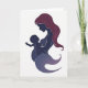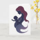 This card shows a minimalist silhouette of a mother holding her baby in a gentle profile pose, set against a bright white background. The mother’s hair flows back in a deep maroon shape, while her face and body are filled with dark indigo that fades into soft lavender near the lower edge. A thin white outline traces both figures, giving them a layered, paper-cut look that adds depth without adding clutter. The baby rests inside the curve of the mother’s arms, reaching outward as if responding to her closeness, creating a tender, affectionate connection ❤️. The overall layout stays open and airy, letting the embrace feel like the center of the scene rather than crowding it with extra elements. Any message text would sit neatly above or below the figures in a simple dark tone, keeping the focus on the embrace 🌼. The only background detail is the uninterrupted white space surrounding the indigo-and-lavender silhouette and the maroon hair.