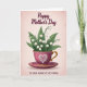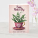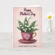 Designed with a romantic, tea-time feel, this card centers on a rich magenta teacup used as a vase, trimmed with gold along the rim and handle. A white heart-shaped filigree detail decorates the cup, hinting at closeness and affection ❤️. The cup sits on a matching saucer, both placed squarely in the middle so your eye lands there first. From the cup rises a lush cluster of tiny white bell-shaped flowers and deep green leaves, arranged so the blooms drape gently as if leaning in toward one another. The background is a soft blush pink with a light, watercolor-like wash that keeps the scene calm and cozy. Near the top, a greeting appears in a deeper berry color in flowing lettering, while a second line sits below the cup in a simpler style, also in a berry tone, like a quiet note of friendship 🌼. Gold highlights catch the light on the cup’s rim and handle, and the pale blossoms stand out crisply against the pink backdrop.