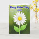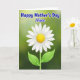 This greeting card features a large daisy-like flower centered in the frame, with white petals spread evenly around a textured yellow center that feels like a sunny hug ❤️. A slim green stem lifts the bloom, and two curved leaves lean outward as if they’re gently reaching toward someone nearby, adding a quiet note of closeness. The background is a soft green field that fades from a lighter shade near the top to a deeper green toward the bottom, giving the scene calm depth. Near the top, the text “Happy Mother’s Day Niece” sits prominently in rounded blue lettering, standing out clearly against the green. The simple layout keeps your eyes moving from the message down to the flower, like a small, affectionate nod between the words and the bloom 🌼. Subtle shading in the petals and leaves adds dimension without crowding the design, keeping everything easy to take in. The yellow center includes a delicate dotted pattern that adds texture and detail, while the petals remain bright white with smooth edges.