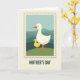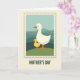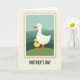 This card features a postage-stamp style frame around a tender nature scene, where a large white bird with bright orange beak and legs stands close to a smaller yellow chick, their bodies angled toward each other like a quiet hug ❤️. They rest on a grassy green strip with gentle curves, suggesting soft ground under their feet. Behind them, rolling hills in teal and muted green drift across the background, creating a calm outdoor setting. The simple shapes and smooth outlines keep the focus on the affectionate glance between the two birds, like a caring guardian and a trusting companion. A faint shadow around the serrated stamp edge adds a subtle sense of depth, as if the picture were a keepsake pressed onto the page. Centered beneath the framed illustration, the words “MOTHER’S DAY” appear in uppercase letters in a dark, high-contrast color that stands out clearly. A small touch of sunny yellow in the chick echoes like a little 🌼 against the cooler hills. The stamp border has evenly spaced zigzag perforations, with a light gray shadow falling just inside the edge.