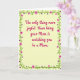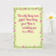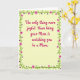 Designed with a soft pale yellow-green background, this greeting card keeps the mood gentle and affectionate, like a quiet moment shared between generations 👩. Centered on the front, a magenta, flowing line of text reads, “The only thing more joyful than being your Mom is watching you be a Mom,” drawing the eye right away. The lettering sits in the middle with generous space around it, giving the message room to breathe while still feeling close and intimate ❤️. Around the edges, a continuous green vine forms a decorative frame that curls smoothly, like it’s wrapping the words in a caring embrace. Scattered along the vine are larger pink flowers with deeper fuchsia centers, suggesting a tender, celebratory bond. Between them, smaller purple, star-like blossoms add a friendly, light touch without crowding the layout. The border stays evenly spaced on all sides, with the green vine and flowers forming a neat perimeter against the pale background. Pink multi-petaled blooms and tiny purple star-shaped flowers repeat all the way around the frame.