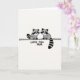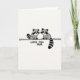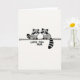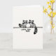 This card shows two stylized forest animals with dark facial masks and ringed tails, facing each other in a balanced pose on a thin horizontal line. The background is a soft off-white, giving the scene lots of open space and a calm, airy feel. A limited range of black, white, and gentle grey tones keeps the look simple while letting their rounded shapes stand out. Their closed eyes and slight smiles suggest a quiet closeness, like a shared moment of affection between family or friends ❤️. Beneath them, the message “LOVE YOU MUM” sits centered and low on the page, written in loose, hand-drawn lettering. The text appears in a dark grey to black tone, matching the animals’ markings without overpowering the illustration. Small details like the curved tails and mirrored stances add a tender, together-in-this feeling 🌼. The two figures are perched evenly on the same fine line, with their tails curling outward at the ends.