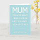 This card features a pale robin’s egg blue background that feels calm and open, setting a gentle stage for a loving message ❤️. Centered at the top, “MUM” appears in large white capital letters, like a big hug that draws your eyes first. Beneath it, the line “I MIGHT BE TALLER THAN YOU NOW BUT I’LL ALWAYS LOOK UP TO YOU” is arranged in several centered rows, giving the words an easy, steady rhythm like a warm conversation between parent and child. The white lettering has a faint shadow underneath each character, adding soft depth that makes the message seem to lift slightly from the page. The overall layout is neat and balanced, with generous spacing that keeps everything readable and relaxed. Near the bottom, “HAPPY MOTHER’S DAY” is set smaller in white, acting like a quiet finishing note 🌼. The text remains centrally aligned from top to bottom, with the pale blue field surrounding it like a smooth, uncluttered frame.