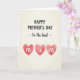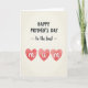 This greeting card features a creamy off-white background with a subtle paper-like texture that feels soft and intimate. Near the top center, a main line of text sits in a deep charcoal, bold, casual sans-serif style, standing out clearly against the light backdrop. Just beneath it, a smaller flowing cursive-style line appears in the same dark tone, gently set between two short horizontal dashes as if it’s being held in a quiet embrace. The mix of strong lettering and softer lettering creates a tender rhythm, like a warm conversation between close loved ones ❤️. Along the lower portion, three watercolor hearts cluster together, their reddish-pink washes slightly translucent with uneven, painterly edges. Inside the hearts, crisp white lowercase letters spell “m”, “u”, “m,” each letter centered and rounded to echo the softness of the shapes 🌼. The hearts sit near the bottom center with small variations in shade and brush texture visible within each heart.