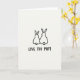This card shows two simple rabbit-like figures drawn in black outline on a wide white background, centered and seen from behind with long ears pointing up. One is slightly larger, and they lean gently into each other, their close shoulders suggesting a quiet, affectionate bond ❤️. Small round tails sit low on their backs, marked with a tiny detail at the base that adds charm without adding clutter. Beneath the pair, the words “LOVE YOU MUM” appear in loose, casual lettering. The text is black and placed low on the front, leaving plenty of open space above the characters. The limited black-and-white look keeps the focus on their tender closeness, like a small shared moment you might catch in a calm room. The overall layout feels airy and calm, with the figures centered and the message aligned beneath them, and a little 🌼 could fit naturally beside the line of text.
