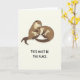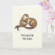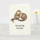 This design shows two stylized river mammals in warm browns and creamy highlights, wrapped in a close embrace that reads like quiet romance or deep friendship ❤️. One gently supports the other, with their heads tucked together and eyes closed, suggesting trust and comfort rather than posed drama. The background is a muted parchment-like tan, keeping the focus on the pair and their tender body language. Soft linework and smooth shading add a cozy, velvety look to their fur and rounded shapes. Beneath the illustration, the phrase “THIS MUST BE THE PLACE” sits centered in simple black uppercase lettering, spaced neatly for a calm, balanced feel. The text is placed low on the card with plenty of open space above, letting the cuddle scene breathe and feel unhurried 🌼. The two figures form a gentle oval silhouette, with the top animal’s arms curving around the other like a protective frame. Subtle gradients along their backs and cheeks fade from deeper brown to pale cream against the quiet tan backdrop.