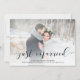 This elegant wedding announcement features your personal photo with a romantic black script overlay that says "just married", and a marble look on the back.