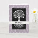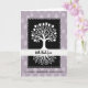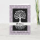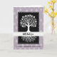 On the front of the card, a white tree silhouette stands centered on a deep black rectangle, its branching limbs dotted with tulip-like blossoms that lean toward each other like close friends ❤️. Beneath it, the roots are mirrored upside down, creating a balanced reflection that suggests two lives quietly connected. A neat frame of tiny white dots outlines the black panel, adding a delicate, decorative edge. Across the middle runs a pale horizontal banner that gently cuts through the tree and roots, carrying the words “With Much Love” in a flowing, cursive-style lettering. The text sits centered on the banner, appearing in a dark ink that contrasts clearly against the light strip. Behind the central panel, the background is a soft lavender field with a faint repeating pattern of abstract floral shapes, like a calm garden haze 🌼. The blossoms and dotted border remain crisp and bright against the dark rectangle, while the lavender pattern stays subtle in the surrounding space.