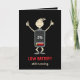 A minimalist black birthday card featuring a low-battery stick figure that’s still going strong.