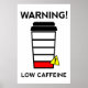 Low Caffeine, Low Battery, coffee poster, funny Poster