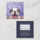Pet Bathing and Grooming / Pet Care / Pet Sitting / Pet Grooming / Pet Food Shop / Pet Beauty Salon / Animal Hospital / Animal Clinic Personalized Appointment Business Cards Template - Adorable Cute Cartoon Low Poly Dog on Purple Color Background.