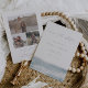 This double-sided save the date card from the Low Tide collection by Navy Road Creative blends coastal elegance with personal charm. The front features a soft watercolor ocean design and romantic script, while the back highlights three customizable engagement photos and clean modern text. A perfect match for beach or destination weddings.