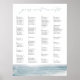 This coastal chic seating chart from the Low Tide collection by Navy Road Creative features a clean, modern layout with “your seat awaits” at the top and soft watercolor ocean artwork in misty blue tones. Available as a printed poster or digital download, it’s perfect for beach weddings, coastal receptions, and destination celebrations.