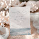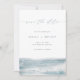 Announce your seaside celebration in style with this elegant save the date from the Low Tide collection by Navy Road Creative. A breezy script font floats above soft ocean watercolor in misty blue tones, paired with modern minimalist text for a fresh, coastal look. Ideal for beach weddings, elopements, and destination events.
