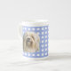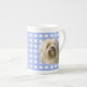 Löwchen related fine bone china cup microwave and dishwasher safe, using Blue Gingham unique original oil paintings, drawings added to digital graphic designs. You Can CHANGE FONT OR COLOR SCHEME, ADD YOUR FAVORITE IMAGE, ADD OR CHANGE TEXT OR DELETE IT TO LEAVE BLANK.