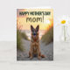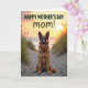 This design shows an alert tan-and-black canine sitting neatly on a sandy path, ears upright and dark eyes meeting yours with a steady, affectionate gaze ❤️. A small pink tongue peeks out, giving the face a friendly, companionable look, like it’s waiting for a shared walk by the water. Around the dog, rippled sand leads through soft beach grasses that lean inward as if sheltering a quiet moment between friends. In the distance, the ocean catches the last light of day, and a low sun near the horizon spreads peach and amber tones across the sky. Over the scene, a short family-love message appears in dark green lettering, placed across the open sky where it’s easy to read without covering the dog. The warm, diffused light outlines the fur and grasses, adding gentle depth and a calm, close-to-you feeling 🌼. The shoreline glimmers beneath the glowing sun, with thin blades of grass framing the lower edges of the sandy path.