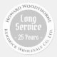 Company appreciation for loyal service or for long service. A long service sticker label which has the name of the recipient, as well as the number of years service, and the name of the company, organisation, or business.