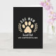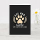 This card features a deep black background with a creamy beige paw print centered like a gentle promise of companionship ❤️. Two matching beige laurel branches curve up along the sides, their small leaves framing the paw as if offering a quiet embrace. Above the emblem, white uppercase text arches in a neat curve, giving the design a confident, banner-like feel. Below the paw, a second line appears in a flowing white cursive-style font, adding a softer, more affectionate tone that suggests shared bonds. Near the bottom, a larger white sans-serif line sits straight and prominent, grounding the layout with a clear statement. The strong contrast between black, beige, and white keeps everything easy to read while still feeling warm and close, like a loyal friend staying near 🌼. The center paw print has rounded toe pads and a larger main pad, all in the same creamy beige.
