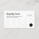 Bring a touch of professional simplicity to your business with this elegant script typography on a plain white background. These Loyalty Cards are fully customizable, with 10 blank spaces for you to record your customers' visits with a stamp or hole punch. Easily add your logo and company details.