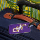 Of of the two luggage tags have some scratch on it.