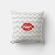 Lt Gray White Chevron, Red Lipstick Kiss Throw Pillow