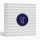 Lt Gray White Chevron Rnd Navy Blue Name Monogram Binder
