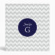 A stylish, modern, chic chevron zig-zag pattern in light grey and white. Customize the round navy blue label with your name and monogram, or other text. (Click on "Customize it" to change fonts, adjust font sizes & font colors, etc.)