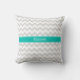 Lt Gray White Chevron Teal Name Monogram Throw Pillow
