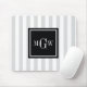 Lt Gray White Stripe Black Square 3 Monogram Mouse Pad