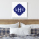Lt Gray White Stripe Navy Quatrefoil 3 Monogram Canvas Print