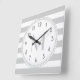 Lt Gray | White Stripes Pattern Monogram Square Wall Clock