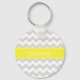 Lt Gray Wht Chevron Yellow Name Monogram Keychain