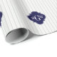 Lt Gray Wht UE Stripe Navy Quatrefoil 3 Monogram Wrapping Paper