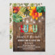 Luau couples shower design featuring rustic wood background, watercolor tropical flowers, and mason jar lights.