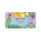 Colorful, tropical, watercolor flowers, palm trees and pink flamingo luau return address label, perfect choice for summer girl 1st birthday.