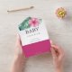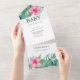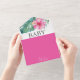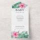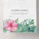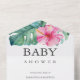 Set the tone for your tropical baby shower with these luau-themed baby shower invitations, featuring a vibrant border of pink hibiscus flowers and monstera palm leaves. These unique baby shower invitations include a detachable diaper raffle card, combining functionality with island-inspired charm.