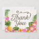 Rustic beach luau theme with tropical floral featuring plumeria, hibiscus, and pineapple thank you card.
